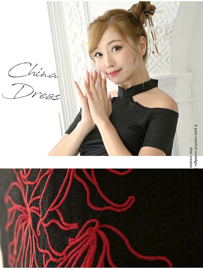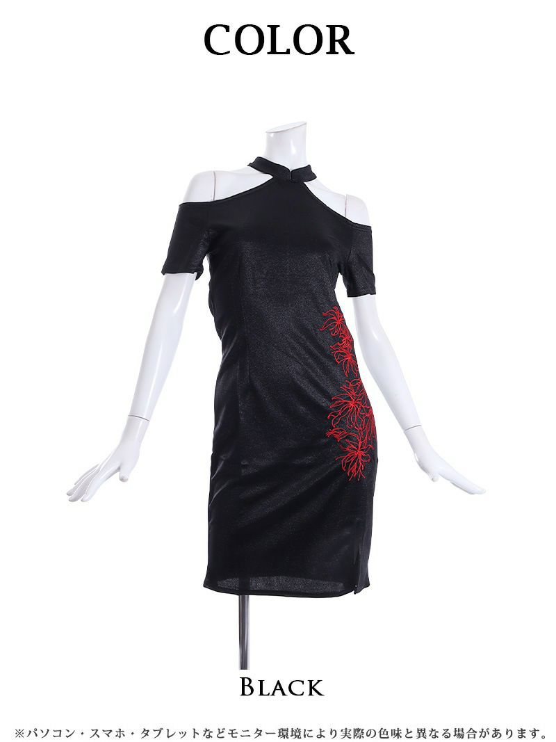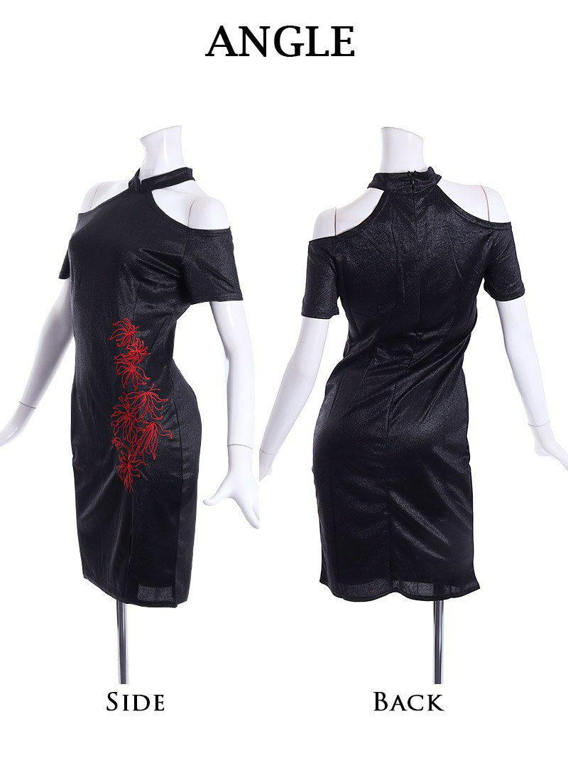 セクシーな肩魅せスタイルが魅力のミニ丈キャバドレス。スリット入りデザインで美脚効果抜群!