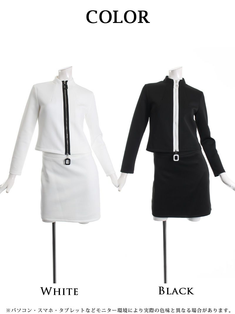 4. 【訳ありアウトレット】ジップアップハイネックスカートキャバスーツ【RyuyuChick】(S/M/L/XL)(ブラック/ホワイト)