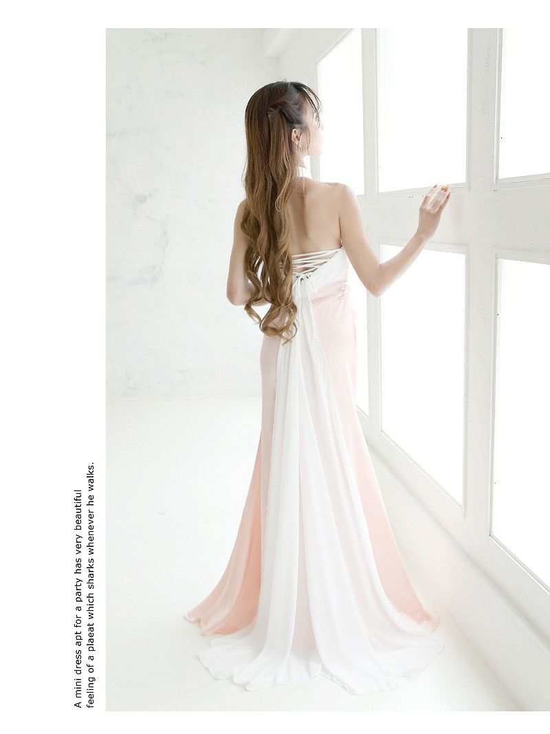 4. 谷間見せマーメイドラインホルターネックロングドレス 武田静加 着用 キャバドレス【BelsiaLUX】(S/M/L)(ピンク)