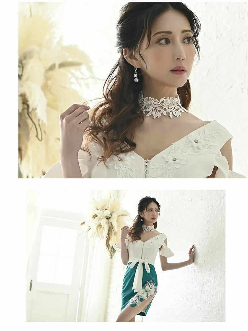 立体刺繍オープンショルダータイトキャバクラドレス 加賀美早紀 武田静香 着用 ミニドレス【Ryuyu】