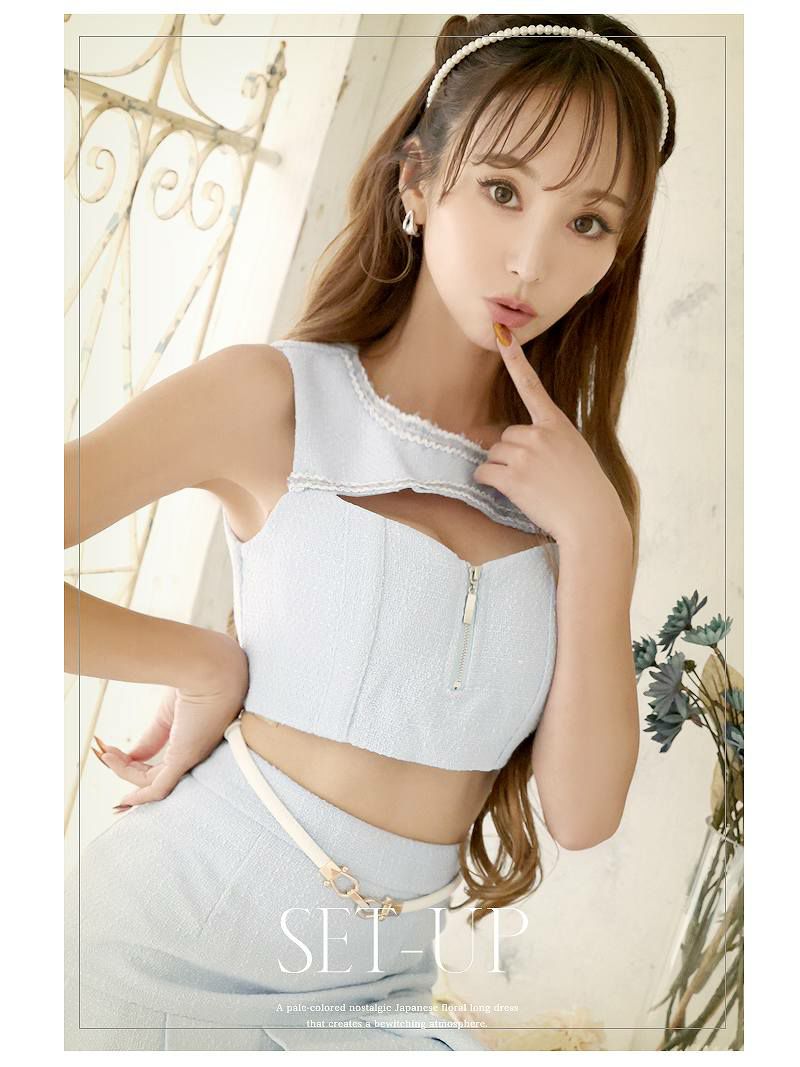 5. スーパーSALE¥9790→¥5333! 谷間見せツイードセットアップミニドレス 武田静加 着用 キャバクラドレス【Belsia】(S/M/L)(ブルー/ピンク)