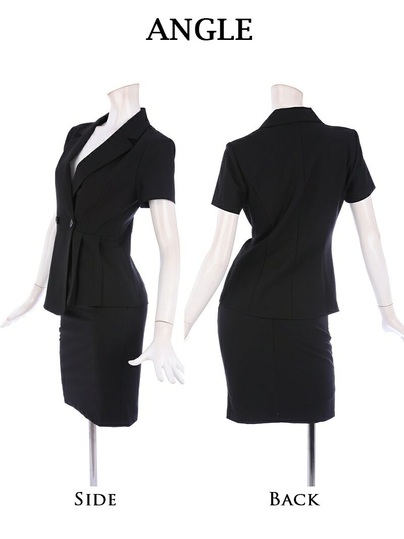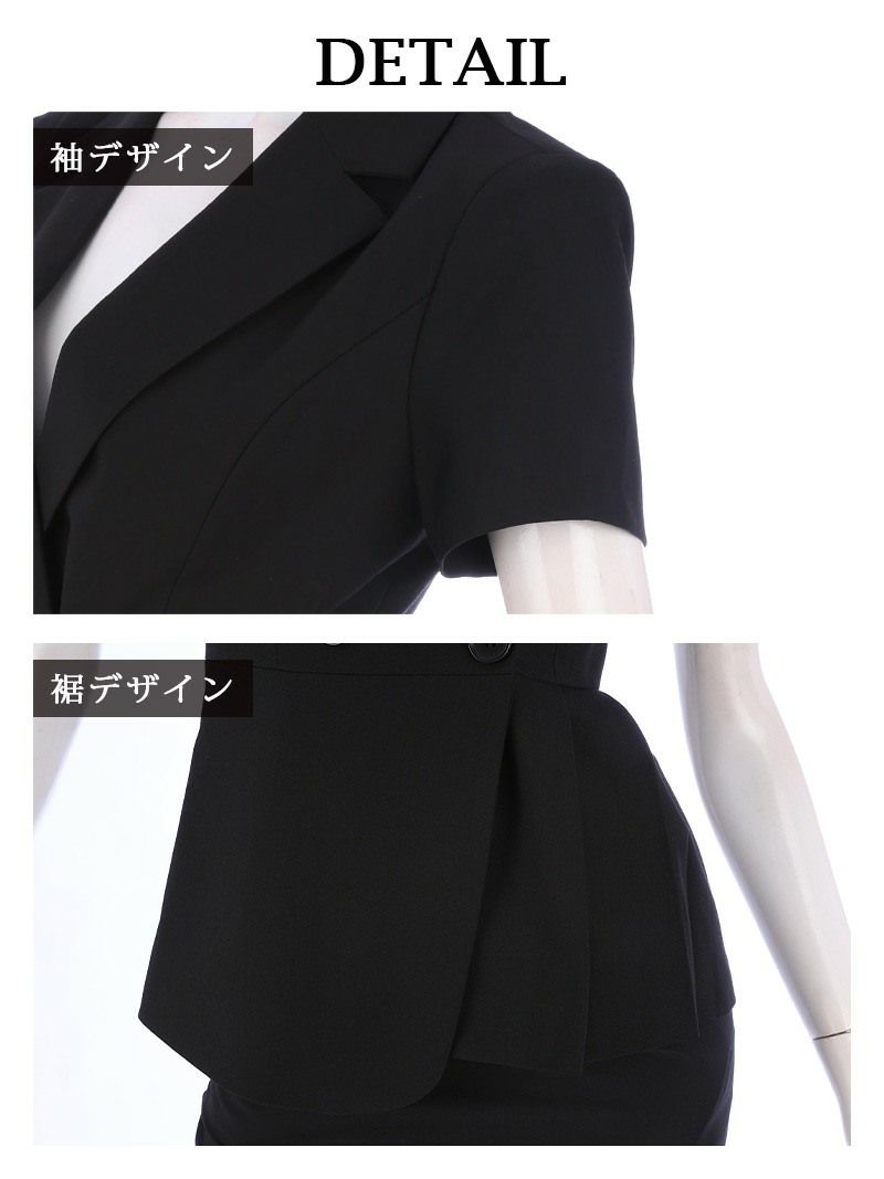 4Lサイズまで展開ブラックカラー半袖ペプラムレディーススーツ 武田静加 着用 キャバスーツ【Belsia】