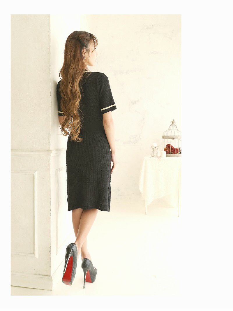 ワッフルニット五分袖キャバワンピ  武田静加 着用 チェーンパイピングキャバドレス【Belsia】