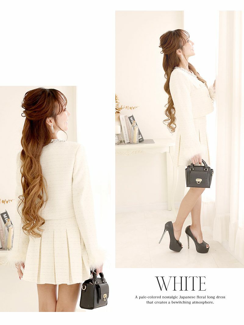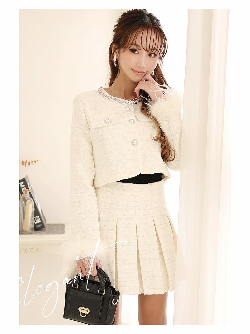 ツイードビジューデザインミニ丈キャバスーツ 武田静加 着用 プリーツスカートスーツ【Belsia】