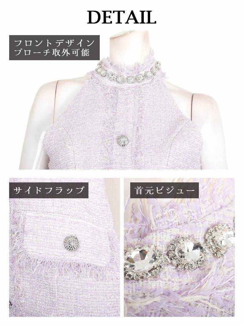 5. 春ツイードビジューフラワーミニドレス 武田静加 キャバドレス【Belsia】(S/M/L)(ラベンダー)