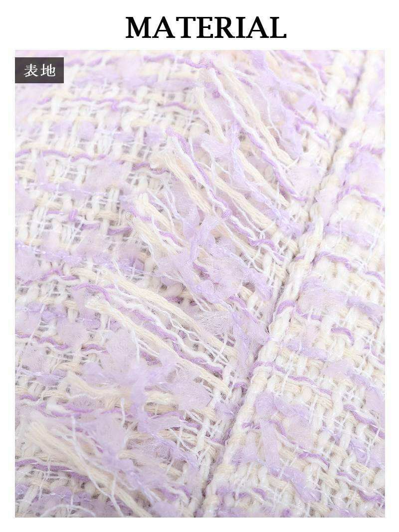 パープルカラーが目を惹く大人可愛いツイードドレスです。