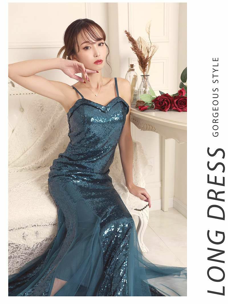 マーメイドライン豪華スパンコールロングドレス 武田静加 着用 キャバドレス【Belsia】