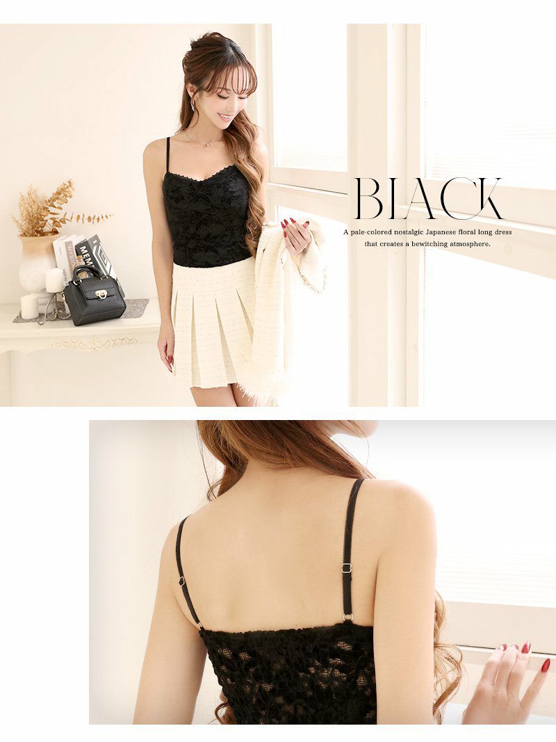 上品なレースが高級感をプラスし、見せキャミとしてもおしゃれに着こなせます。