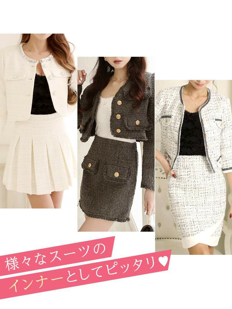 背中がシースルーデザインで女性らしさを引き立て、スーツのインナーとしても大活躍!
