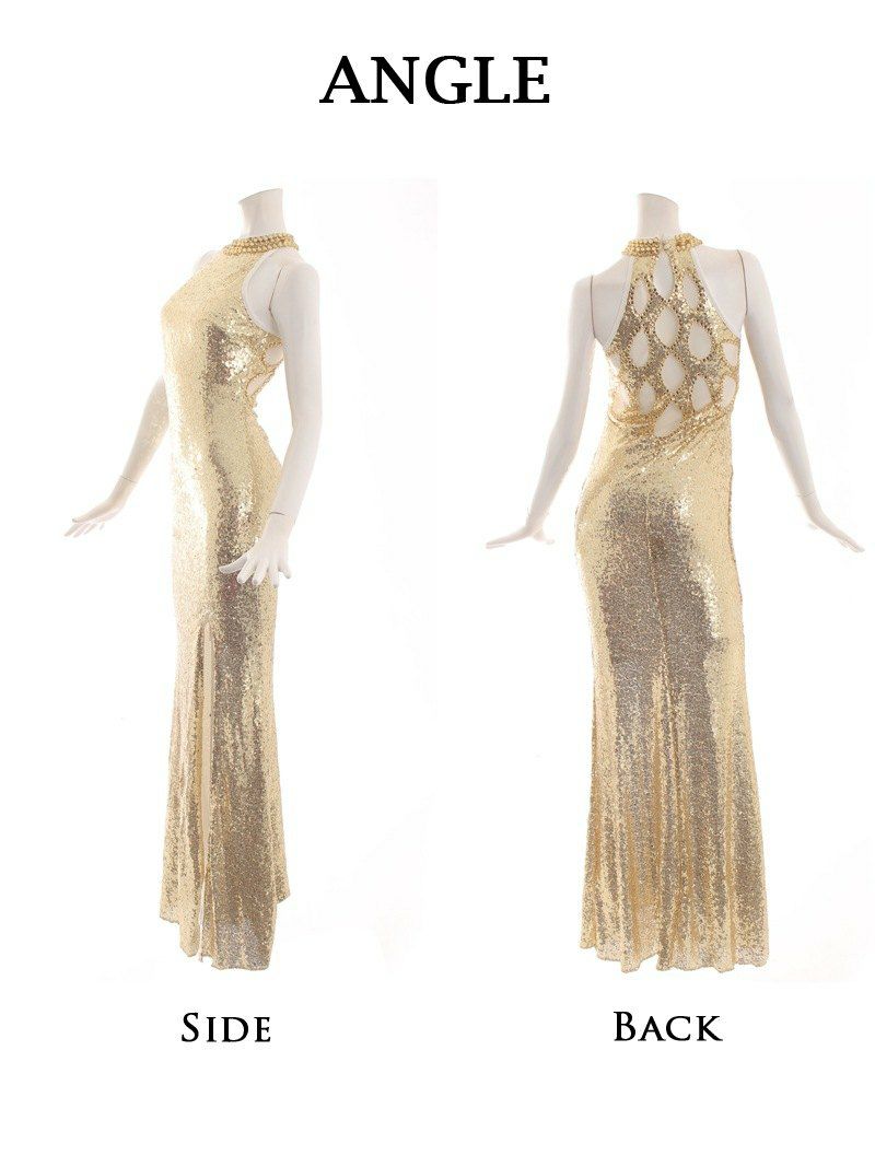 煌めくスパンコールが輝きを放ち圧倒的な存在感を演出してくれるマーメイドロングドレスで、大胆でセクシーな背中魅せができるナイトドレスになっています。