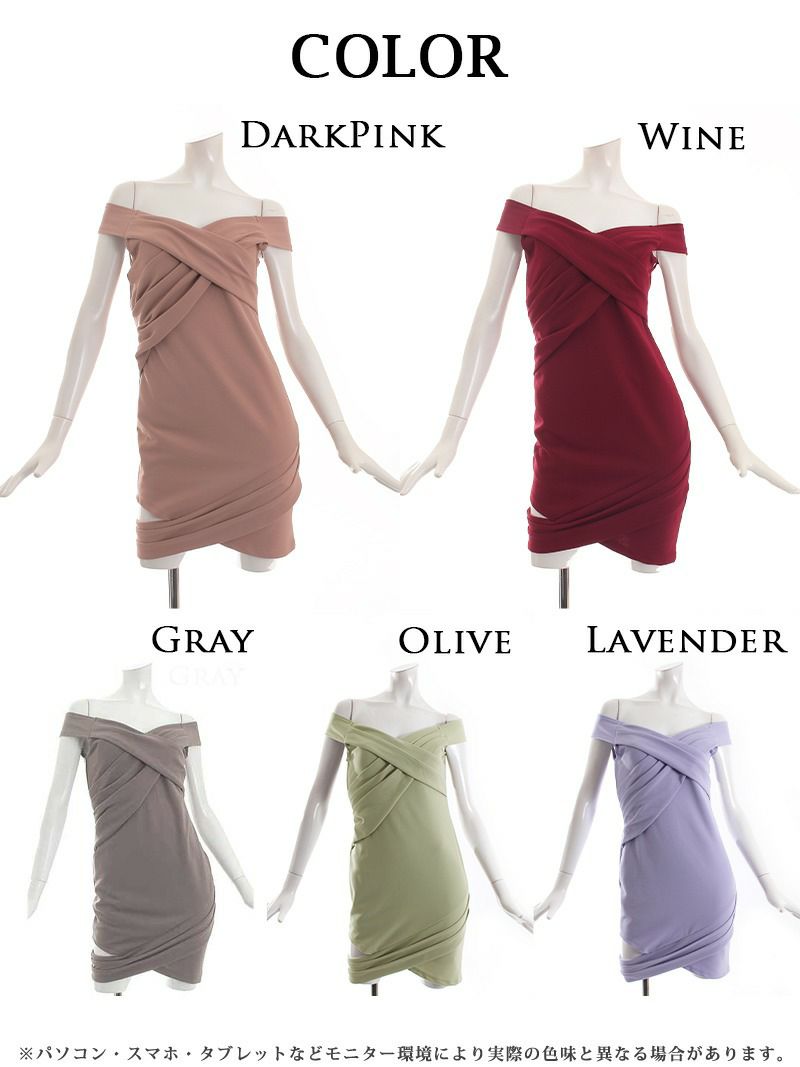 5. XL対応!オフショル×谷間魅せタイトドレス【RyuyuChick】(XS/S/M/L/XL)(グレー/ダークピンク/ワイン/ラベンダー/オリーブ)