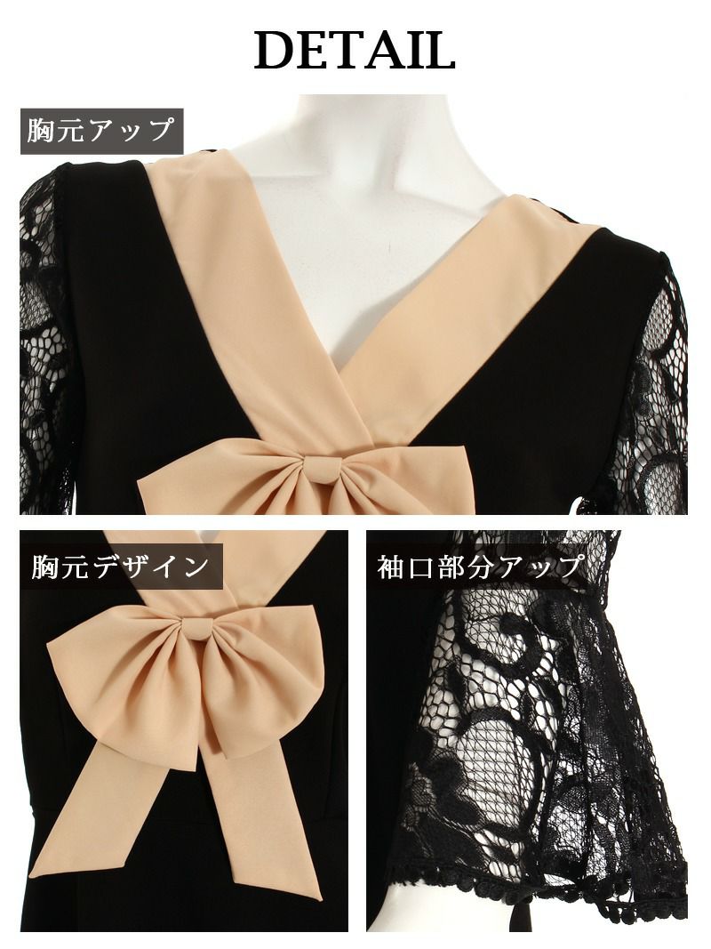 4. 【訳ありアウトレット】レース袖付きリボンミニキャバワンピース【RyuyuChick】(S/M/L/XL)(ブラック)