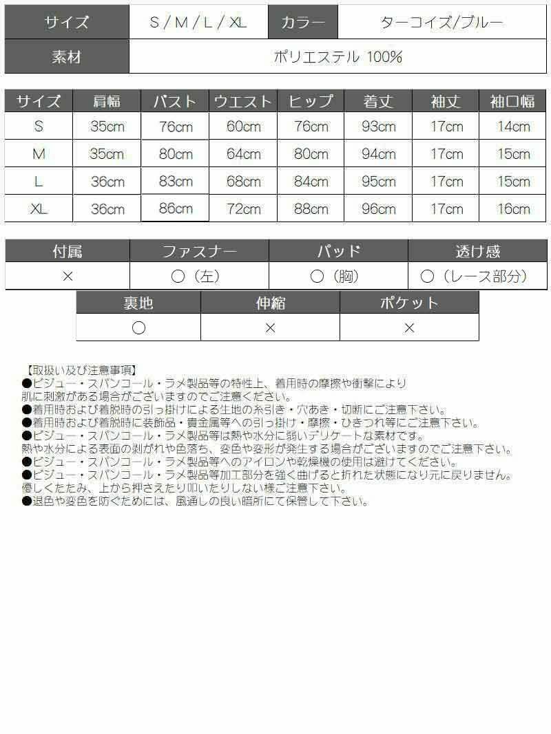 7. ラッフルフリルレース袖ウエストスピンドルキャバドレス【DAYS PIECE】(S/M/L/XL)(ターコイズ/ブルー)