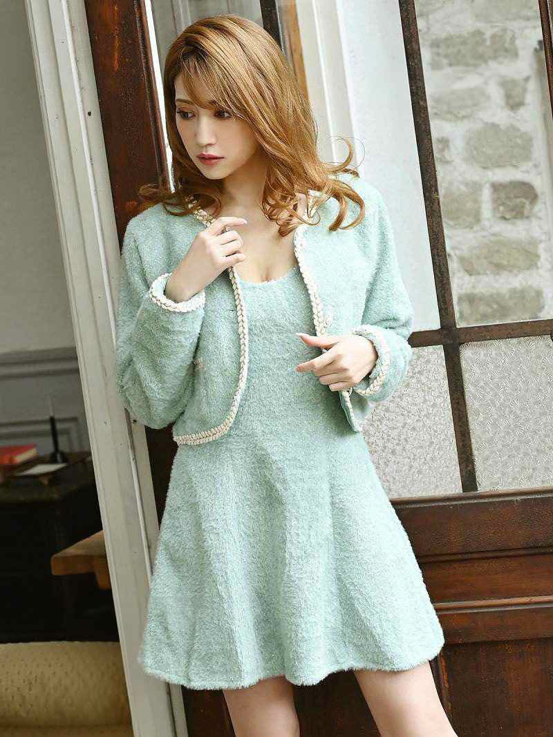 ショートモヘア風ミニ丈ワンピーススーツ 加賀美早紀 着用【Belsia】