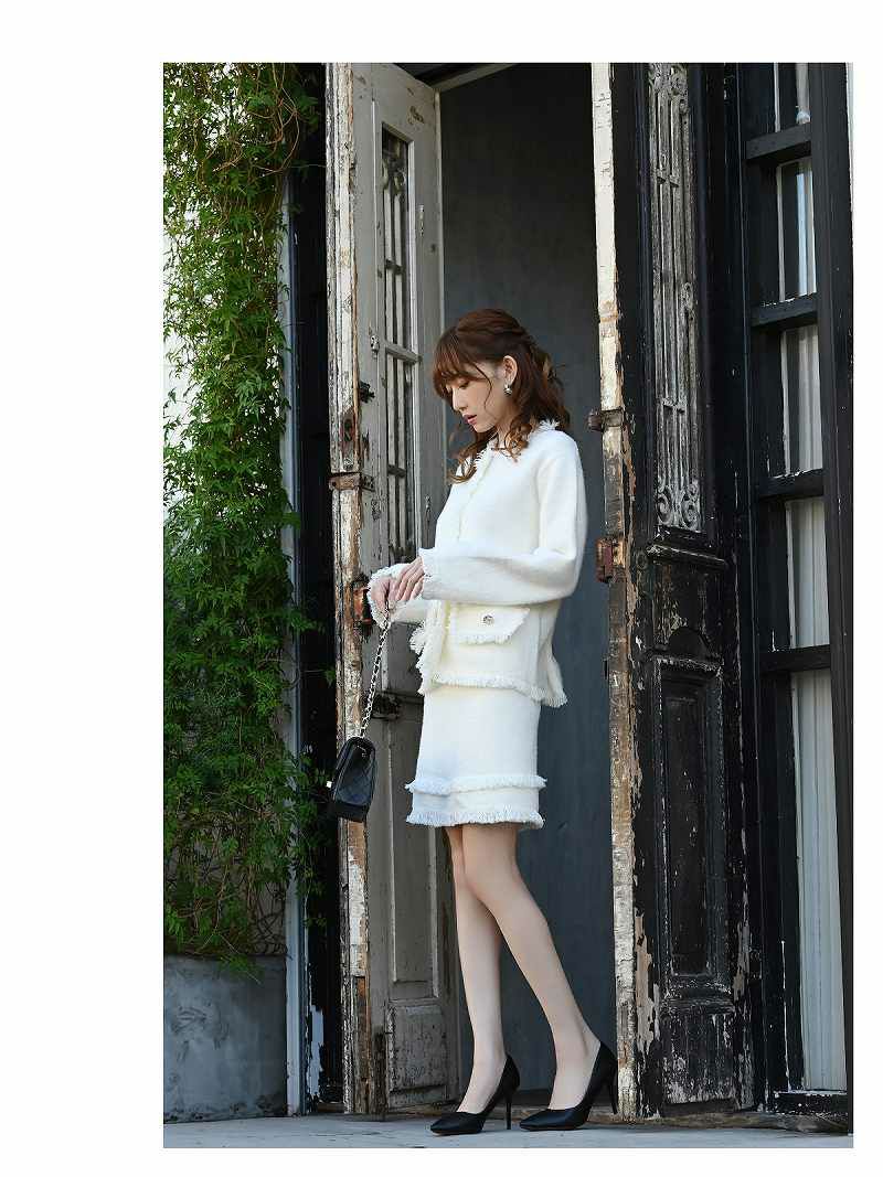 7. スーパーSALE¥10980→¥9881! モヘア調フリンジデザイン長袖ニットセットアップレディーススーツ 加賀美早紀 着用キャバスーツ【Belsia】(M)(ブラック/ホワイト)