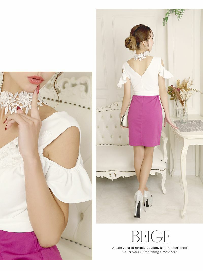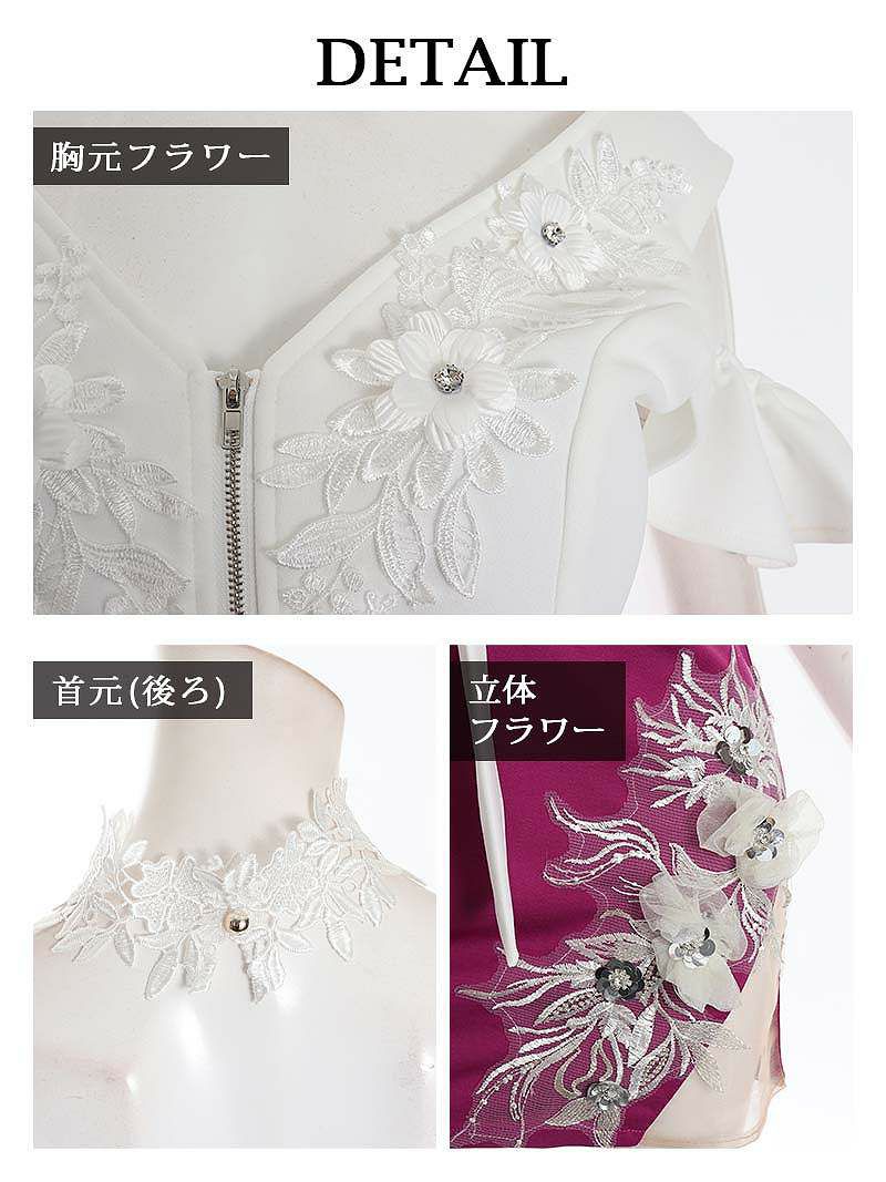オープンショルダー立体花柄刺繍タイトキャバドレス 武田静香 加賀美早紀着用ミニドレス【Ryuyu】