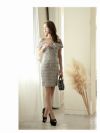 5. クラシカルツイードデザインタイトオフショルダーキャバドレス【Belsia】(S/M/L)(ブラック/ブルー/ピンク) ptpl