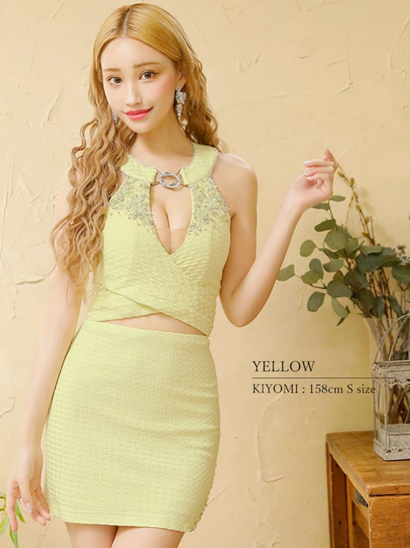 ビビッドな魅力で瞬間主役 【Angel R/エンジェルアール】上品セクシーセパレートミニドレス(XS/S/M)(ホワイト/ミントグリーン/パープル/イエロー)