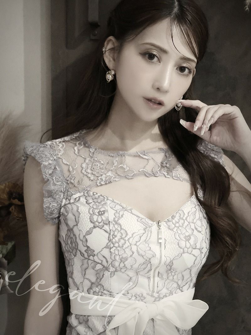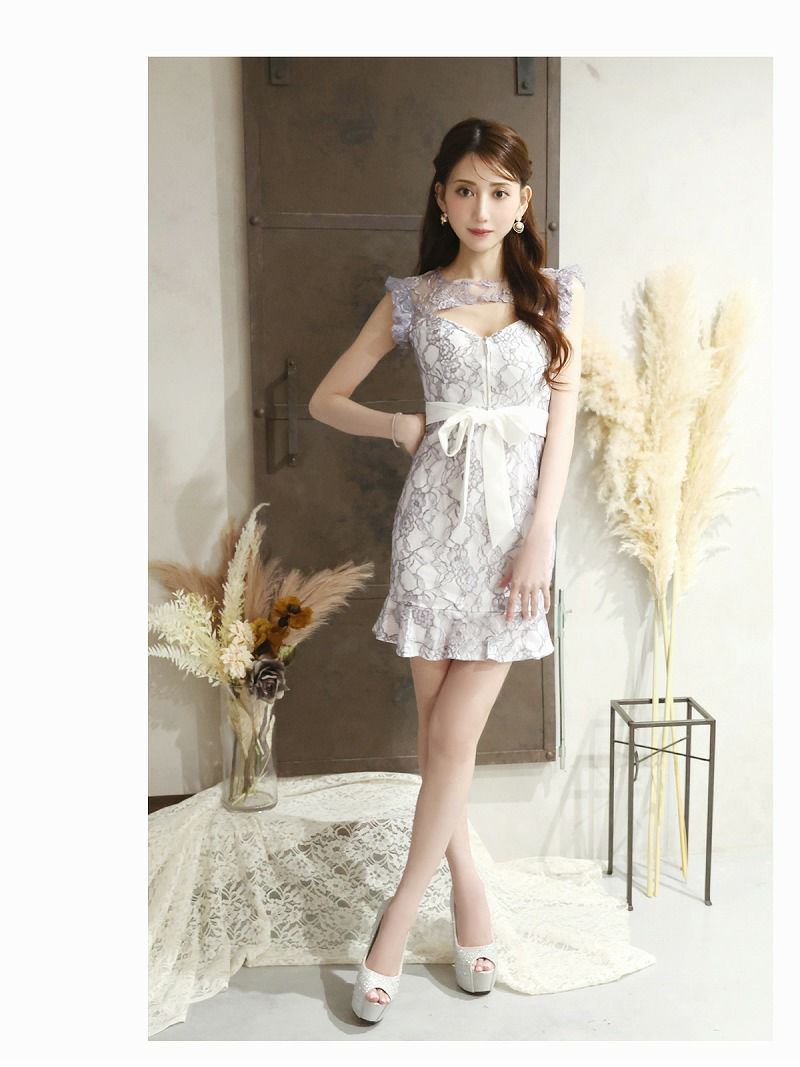 フロントジップ総レースフリルラグジュアリー 加賀美早紀 着用 キャバミニドレス【Belsia】