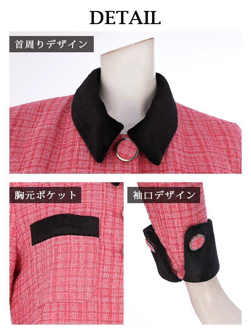 ボレロ風ジャケットで脚長スタイルアップ ラメツイードバイカラー韓国風キャバスーツ 加賀美早紀 着用セットアップ【BelsiaLUX】(S/M/L)(オフホワイト/ピンク/グレー)