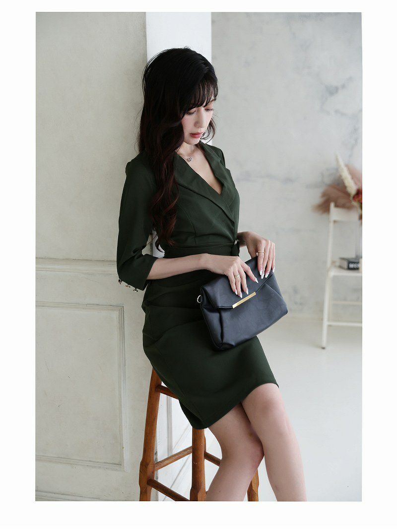 上品なグリーンカラーが艶やかで高級クラブにお勤めの方やラウンジワンピースとしても着用できる夜職ワンピースです。