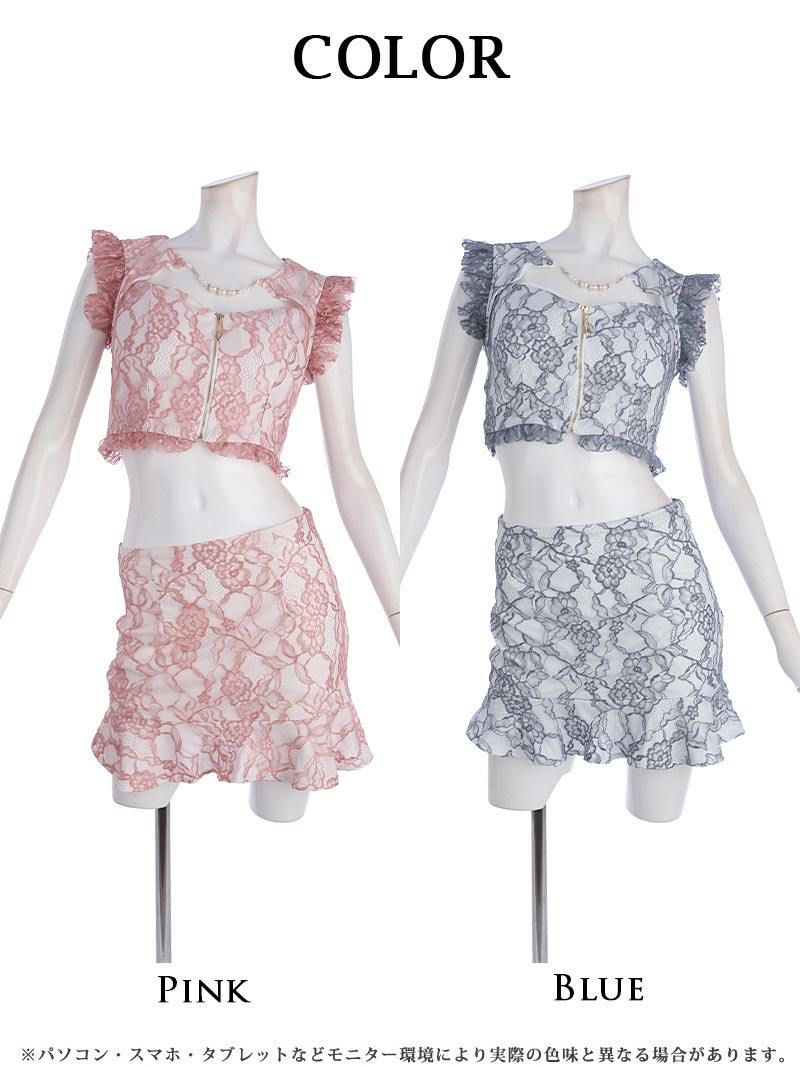 4. 【訳ありアウトレット】花柄レース品格スカートセットアップキャバドレス【Belsia】(XS/S/M/L)(ピンク/ブルー)