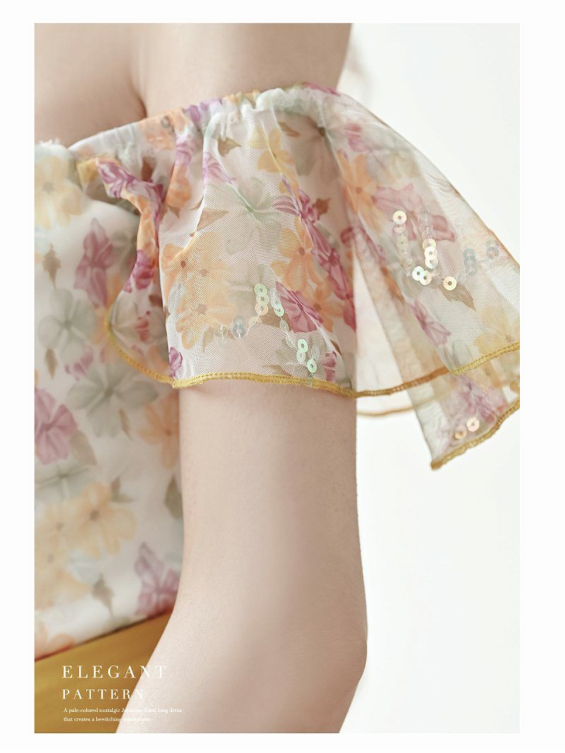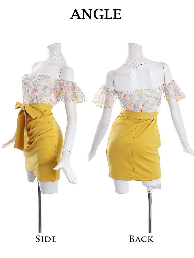 4. 【訳ありアウトレット】豪華オフショルダー小花柄キャバミニドレス【Belsia】(S/M/L)(イエロー/パープル)