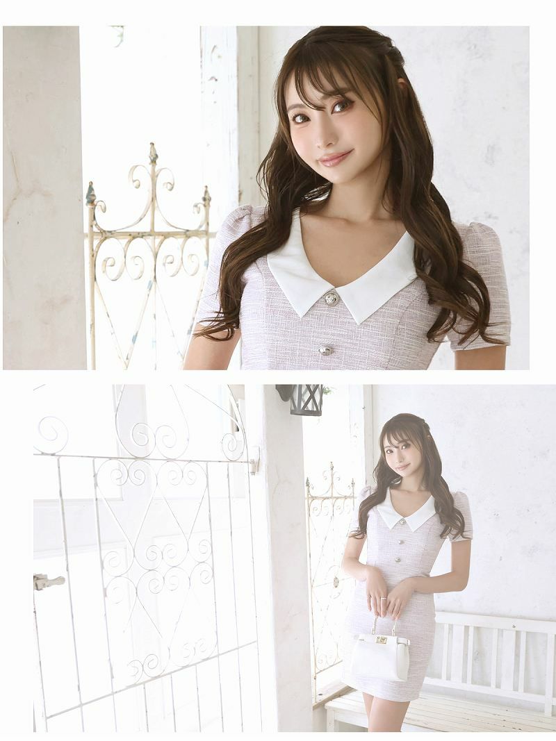5. 【訳ありアウトレット】落ち着きツイード上品キャバワンピース【Belsia】(S/M/L)(ラベンダー/ブラック) ptpl