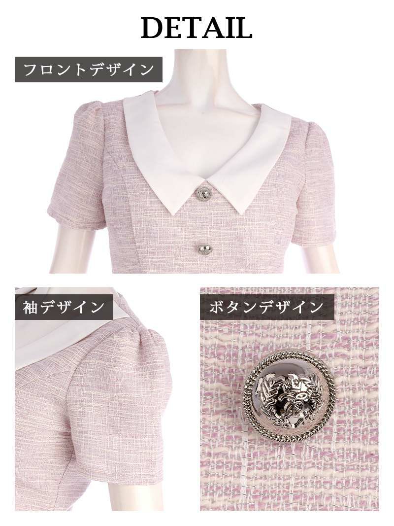 上質なミックスツイード素材を使用した、落ち着きのあるキャバワンピース。