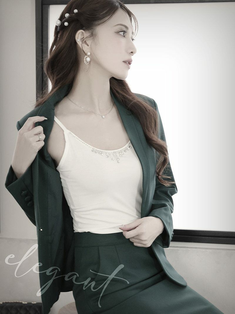 上品な装いで大人っぽく スーパーSALE¥9980→¥8981! 膝丈セットアップタイトキャバスーツ 加賀美早紀 着用 レディーススーツ【Belsia】(S/M/L/XL(2L)/XXL(3L))(ベージュ/グリーン/ブラック)