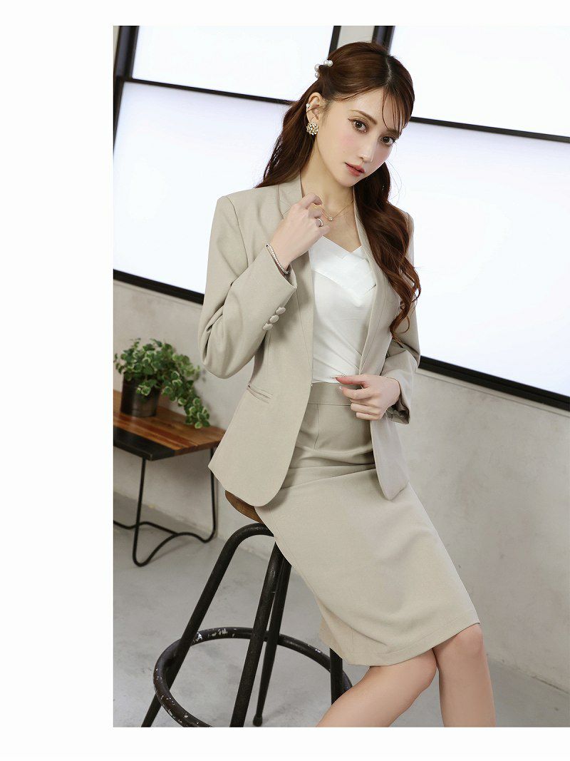 6. スーパーSALE¥9980→¥8981! 膝丈セットアップタイトキャバスーツ 加賀美早紀 着用 レディーススーツ【Belsia】(S/M/L/XL(2L)/XXL(3L))(ベージュ/グリーン/ブラック)