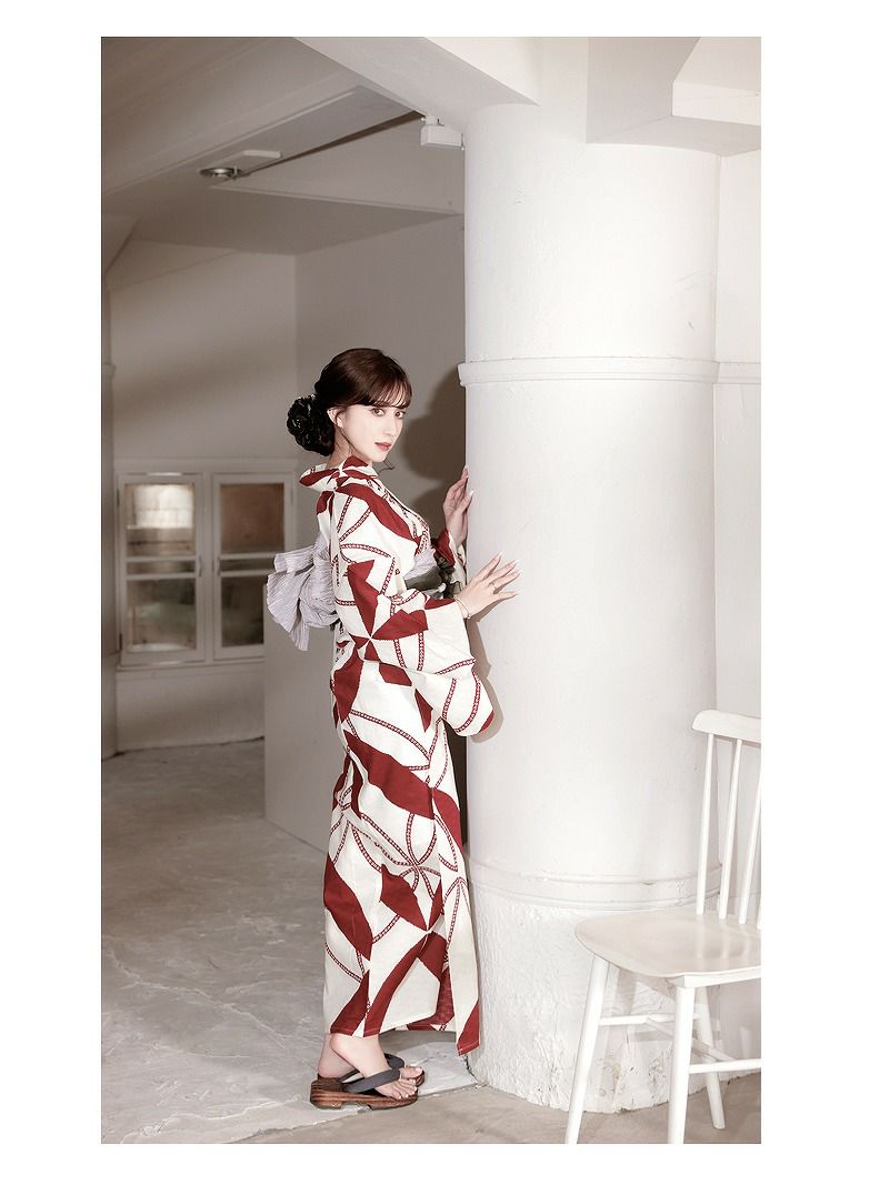 5. 浴衣 ホワイト×赤リーフの古典柄レディース浴衣 加賀美早紀 着用 2点セット浴衣【Ryuyu】(フリーサイズ)(ホワイト)