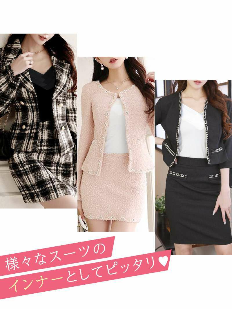 Vネックデザインが女性らしさを引き立て、フォーマルなキャバスーツのインナーとしても活躍。