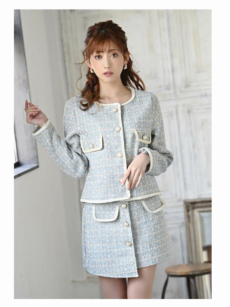 4. 【訳ありアウトレット】大人の着こなし上品ツイードママキャバスーツ【BelsiaLUX】(S/M/L)(ブラック/ブルー)