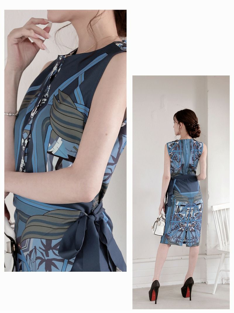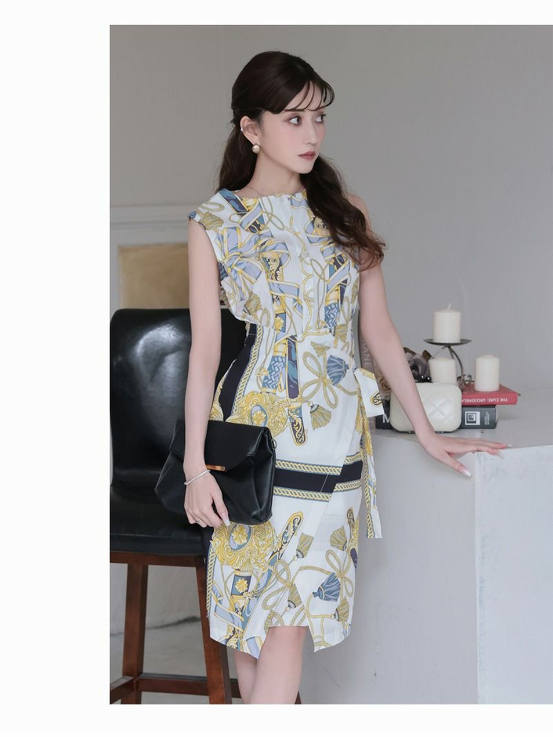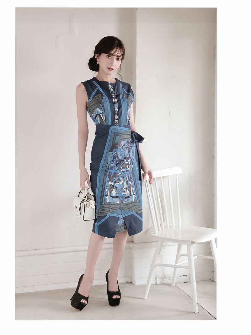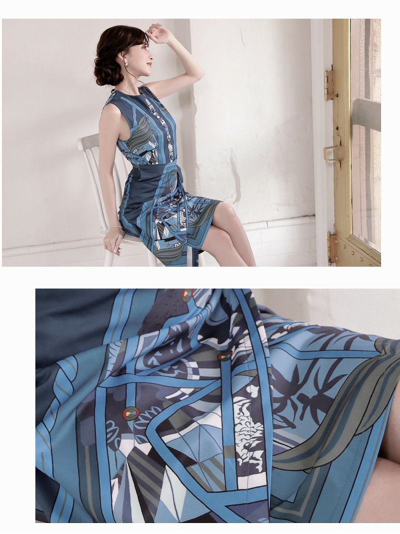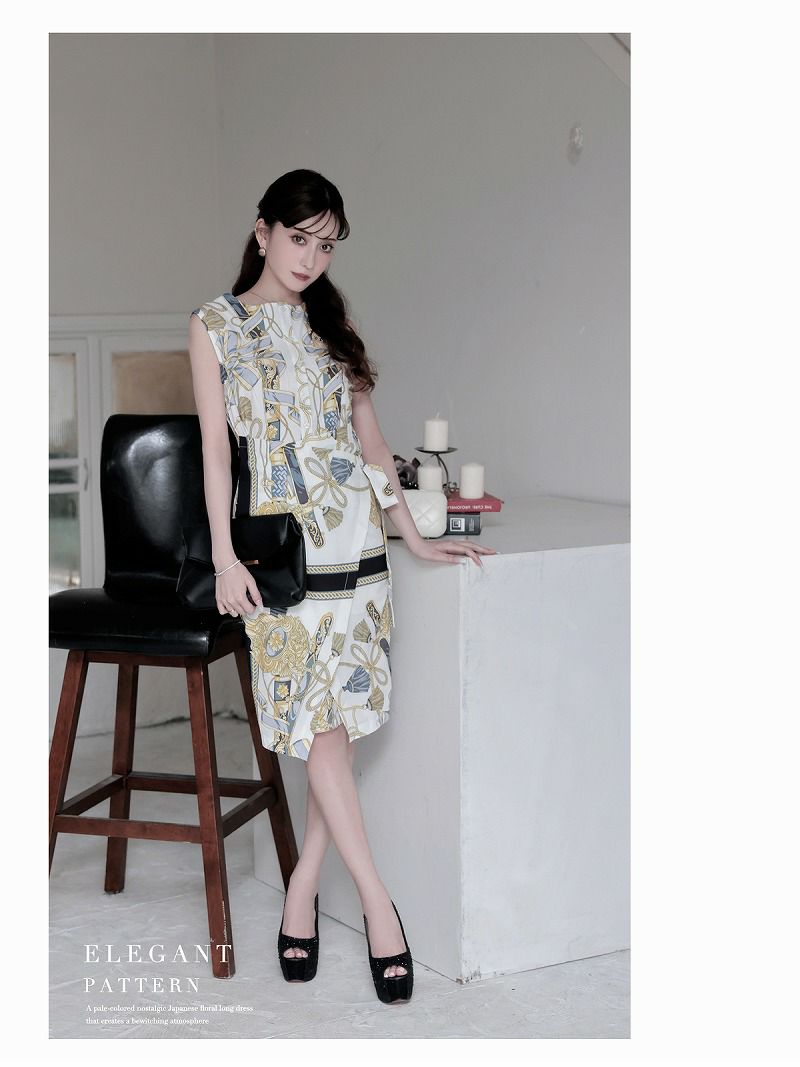 エレガントスカーフ柄カシュクールキャバワンピース 加賀美早紀 着用 ラウンジワンピース【Belsia】