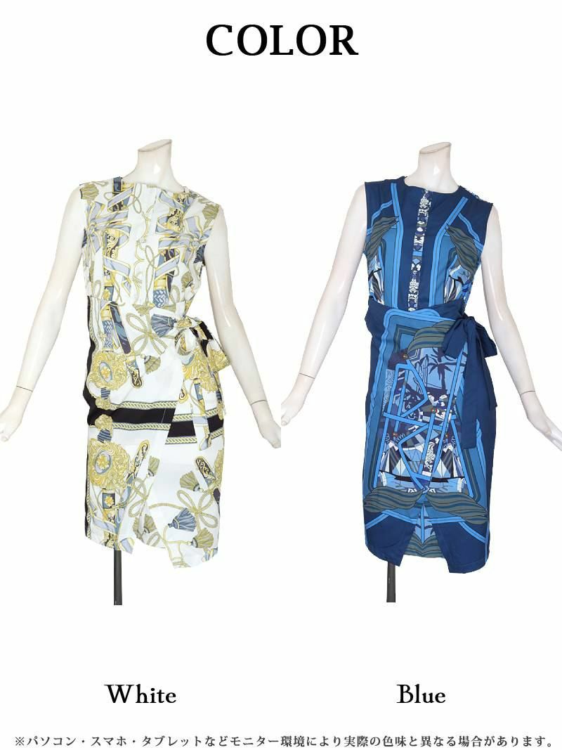 5. 先行予約割¥6980→¥6630!※一部予約販売※エレガントスカーフ柄カシュクールキャバワンピース 加賀美早紀 着用 ラウンジワンピース【Belsia】(S/M/L/XL(2L))(ホワイト/ブルー)