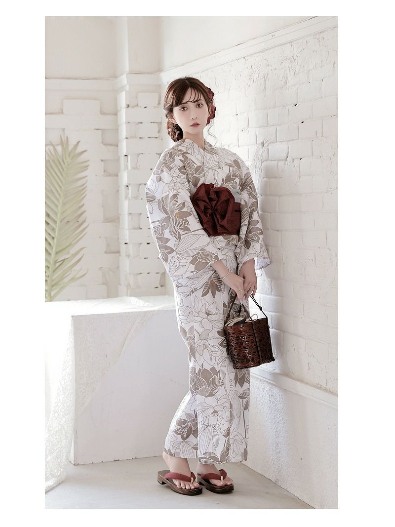 色気溢れる白×ベージュの配色が男心をくすぐるレディース浴衣です。