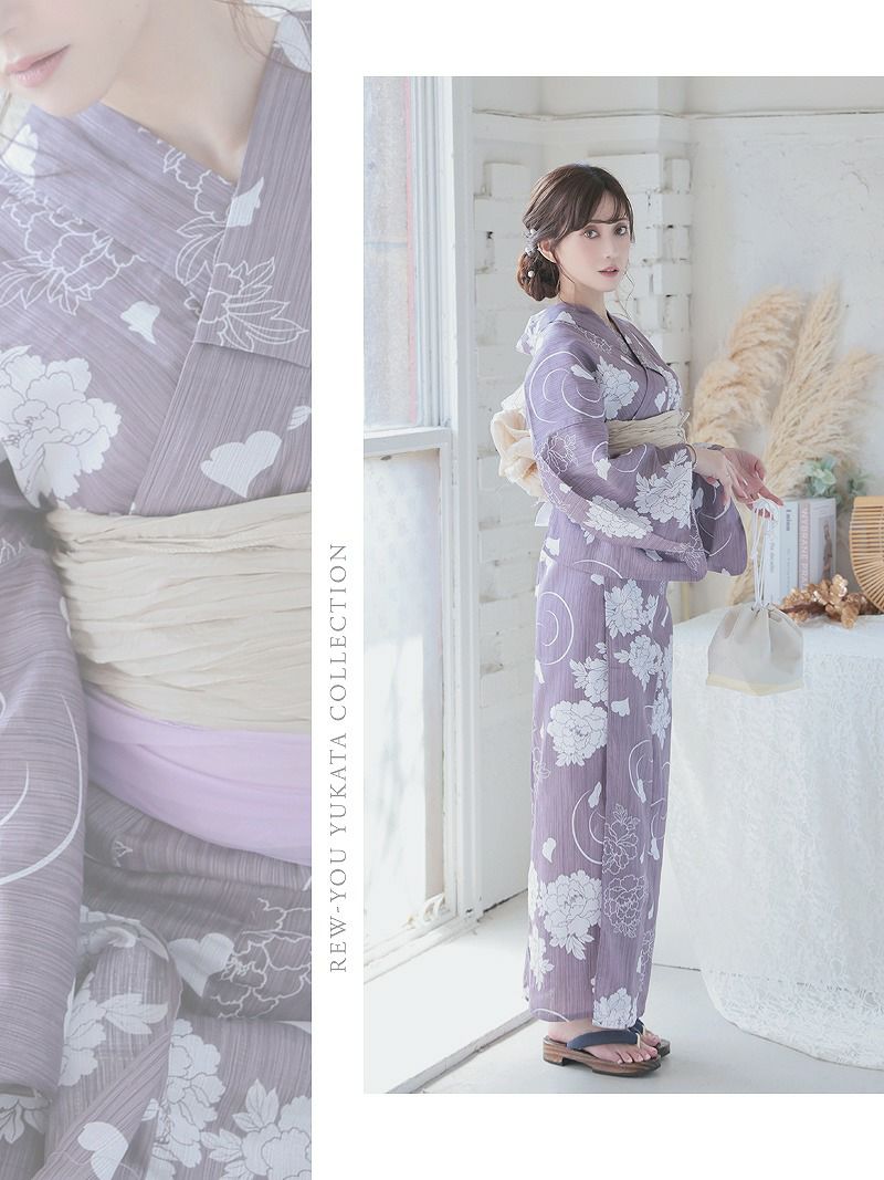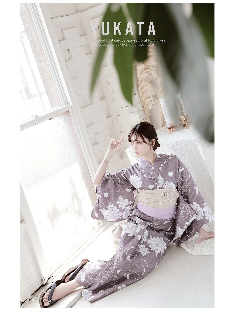 浴衣 くすみパープル古典柄レディース浴衣 加賀美早紀 着用 大人浴衣2点セット【Ryuyu】