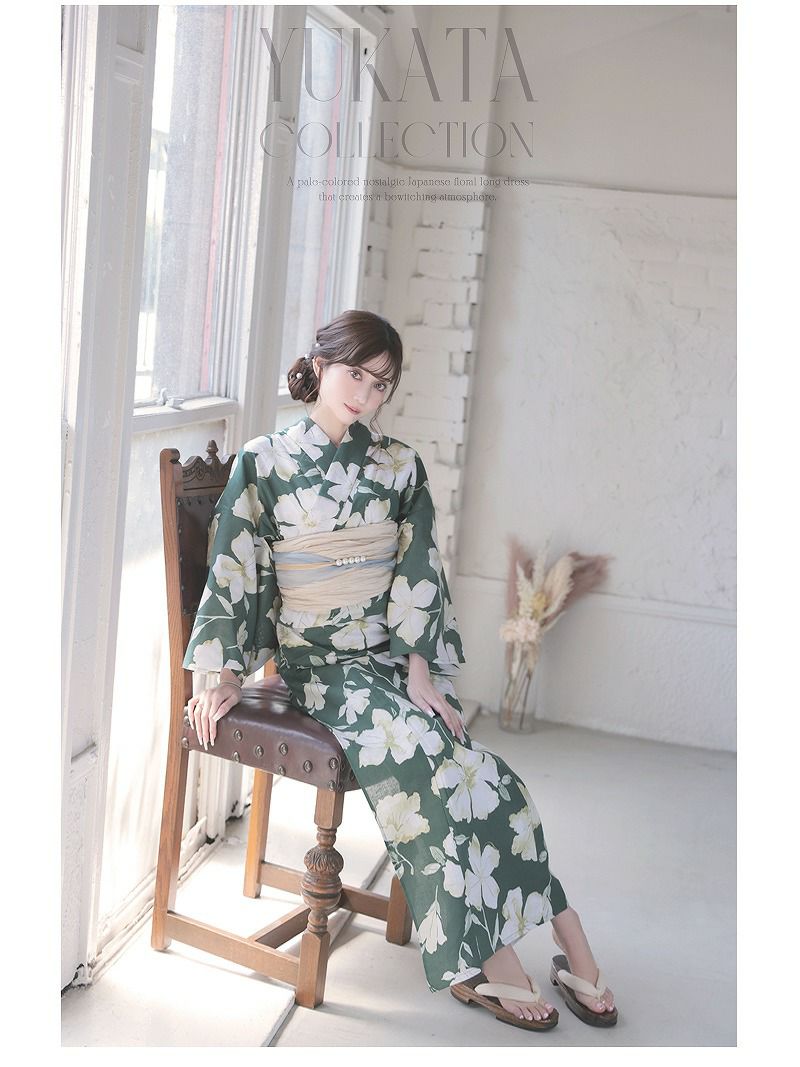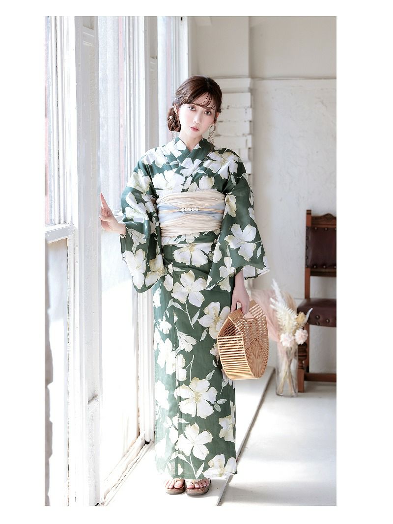 まわりと被りにくい個性派スタイルで、大人女性の魅力を引き立てる女性用浴衣は帯と浴衣の2点セット。