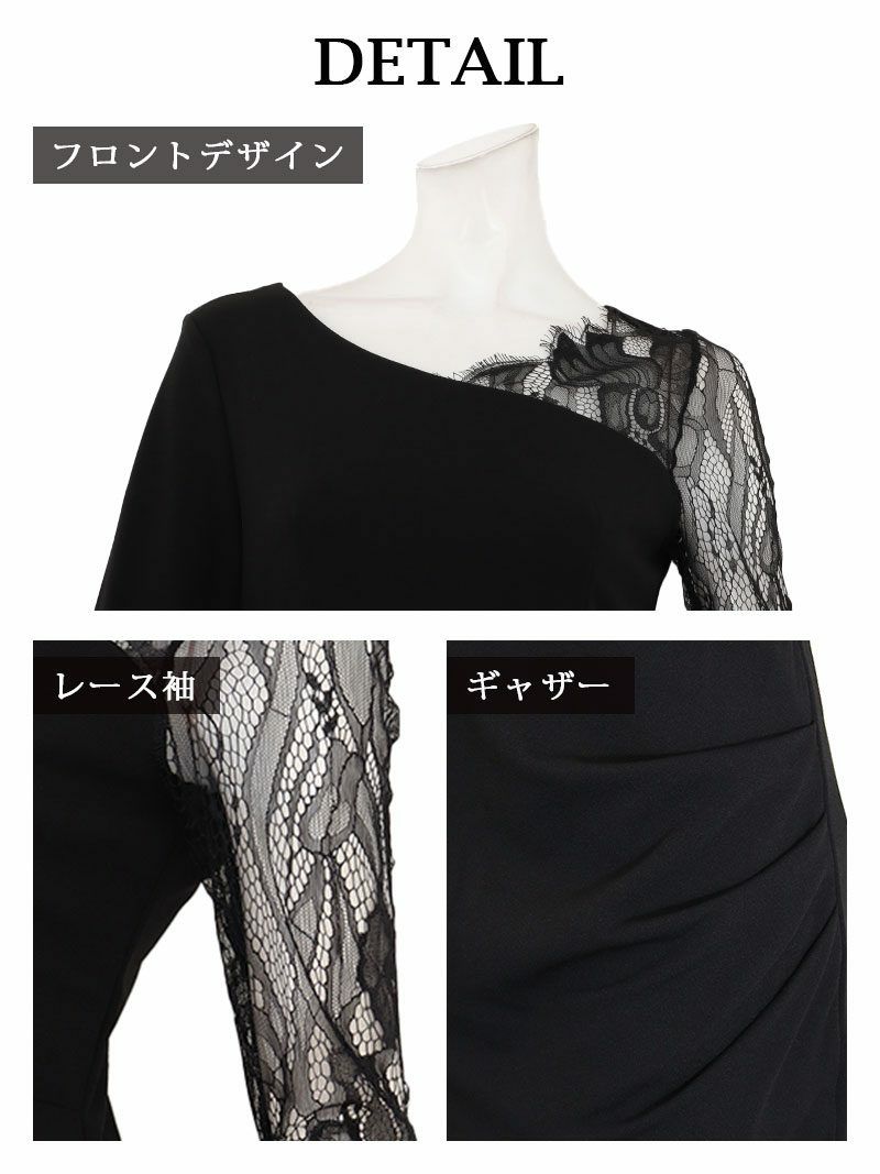 5. アシンメトリーレーススリーブ膝丈キャバドレス 加賀美早紀 着用 キャバドレス【Belsia】(S/M/L/XL(2L))(ブラック) ptpl