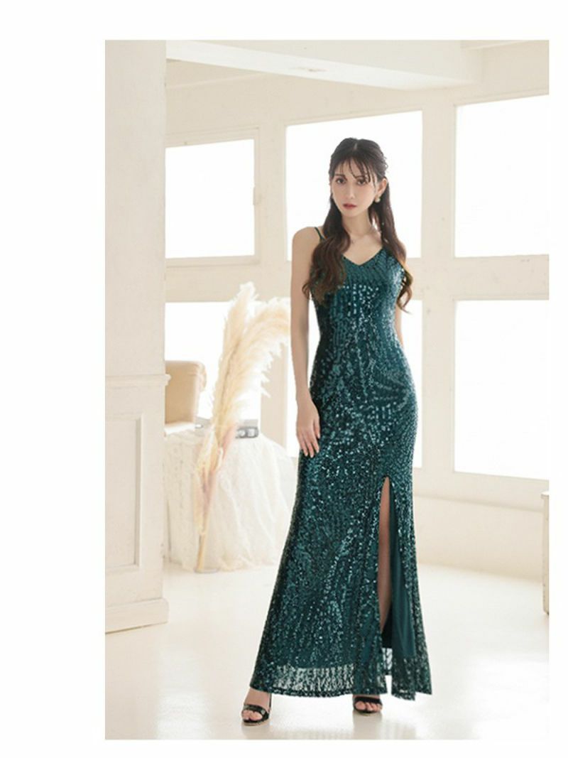 6. 先行予約割¥7980→¥7581!※一部予約販売※スパンコール幾何学柄深スリットキャミソールタイトマーメイドロングドレス 加賀美早紀 着用キャバドレス【Belsia】(S/M/L)(グリーン/ネイビー/ゴールド(S/3月下旬)/ブラック/レッド(S/M/L/3月下旬))