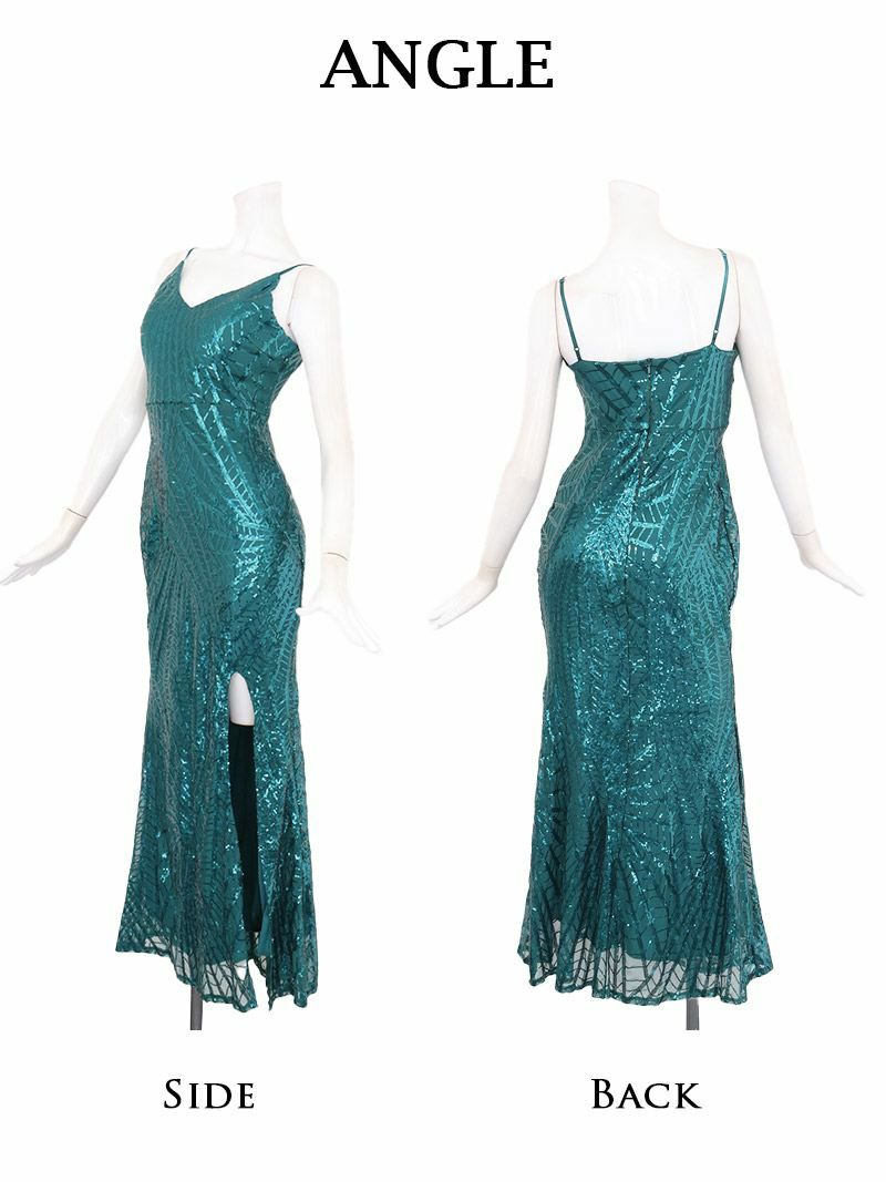 4. 先行予約割¥7980→¥7581!※一部予約販売※スパンコール幾何学柄深スリットキャミソールタイトマーメイドロングドレス 加賀美早紀 着用キャバドレス【Belsia】(S/M/L)(グリーン/ネイビー/ゴールド(S/3月下旬)/ブラック/レッド(S/M/L/3月下旬))