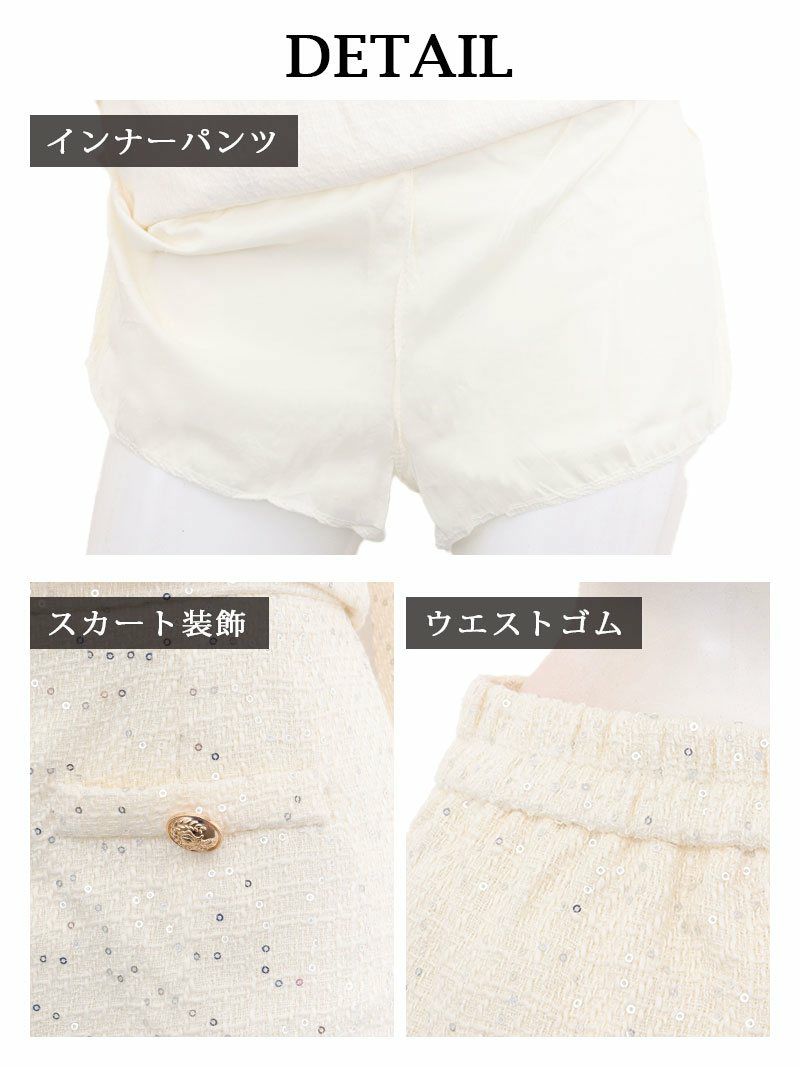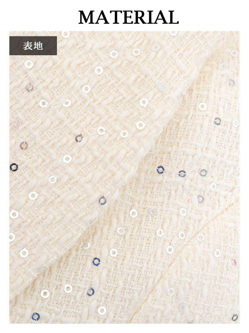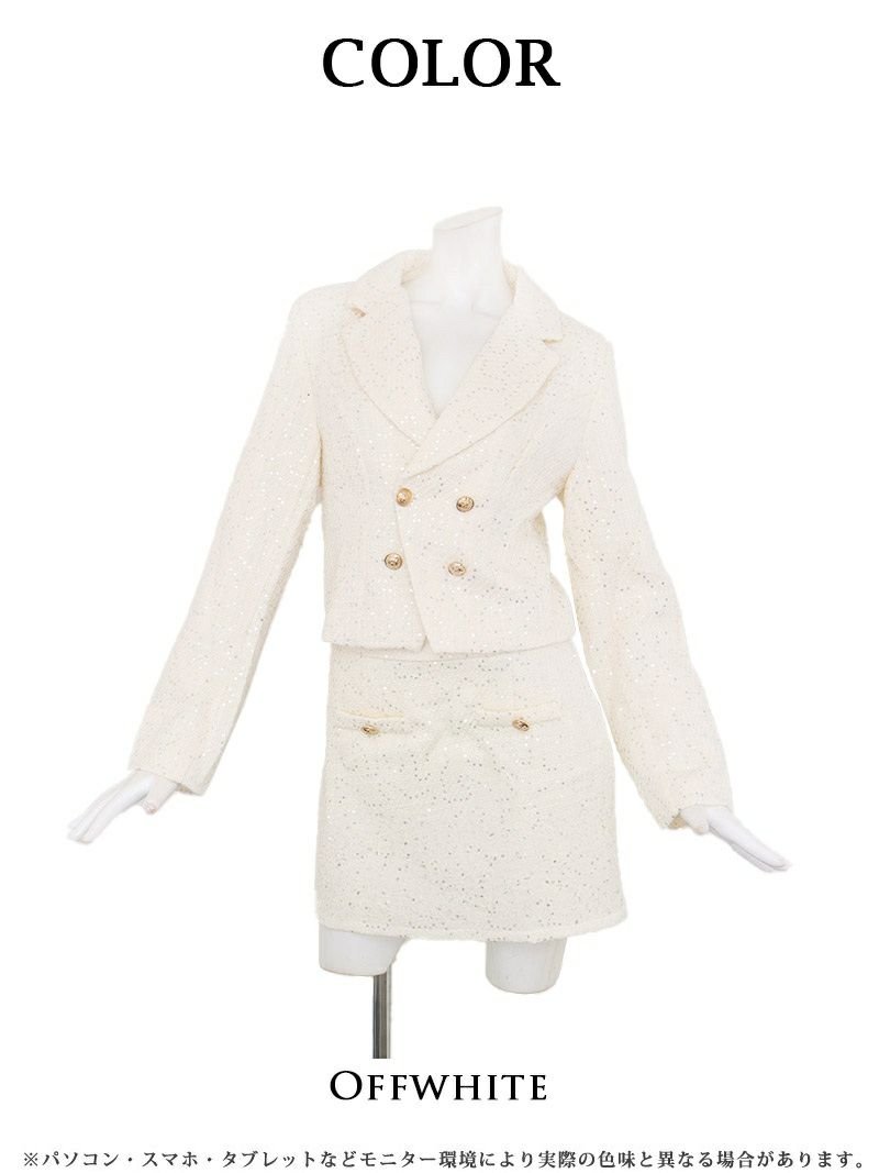6. スパンコールツイード金ボタンセットアップスーツ 加賀美早紀 着用キャバドレス【Belsia】(S/M/L/XL(2L)/XXL(3L))(オフホワイト)