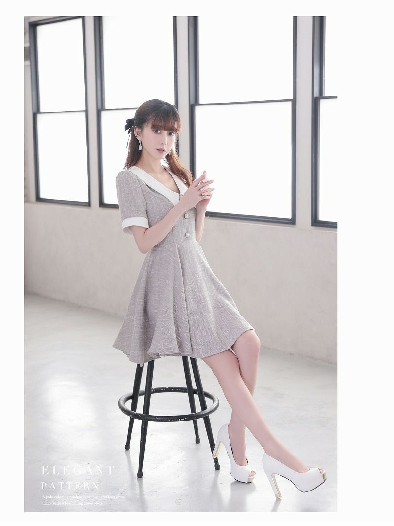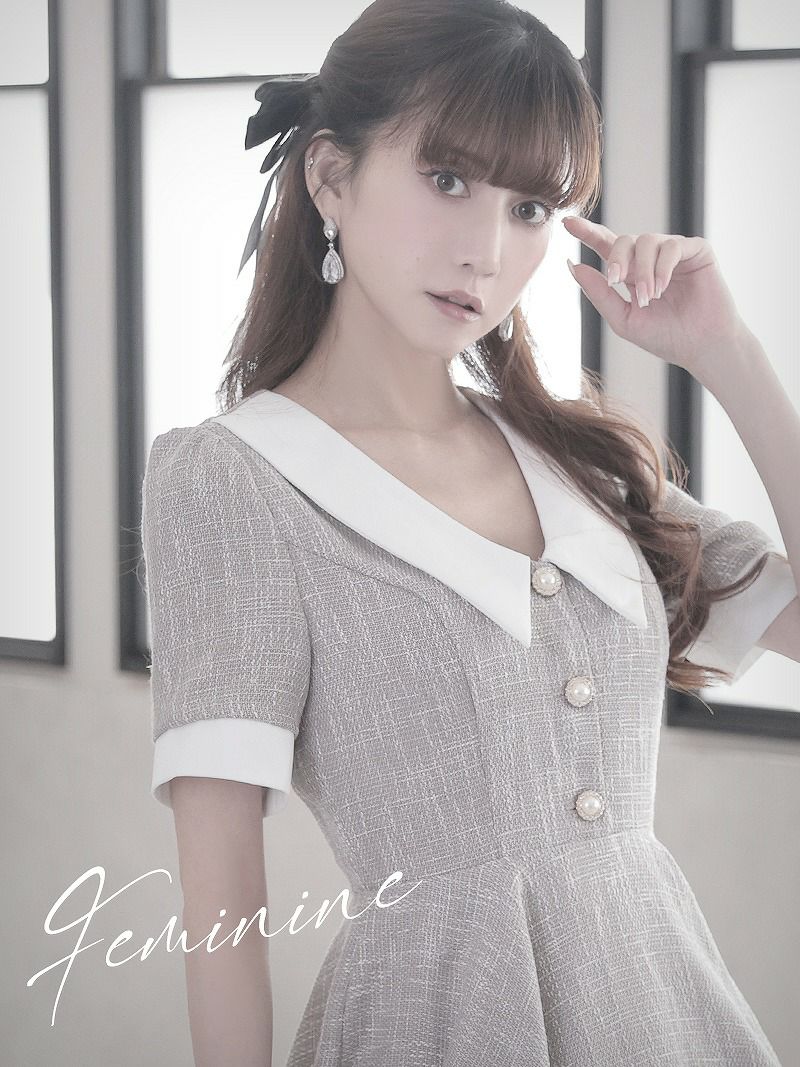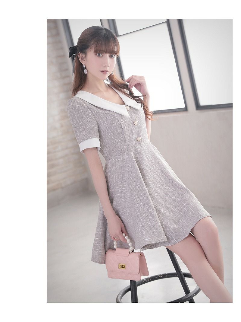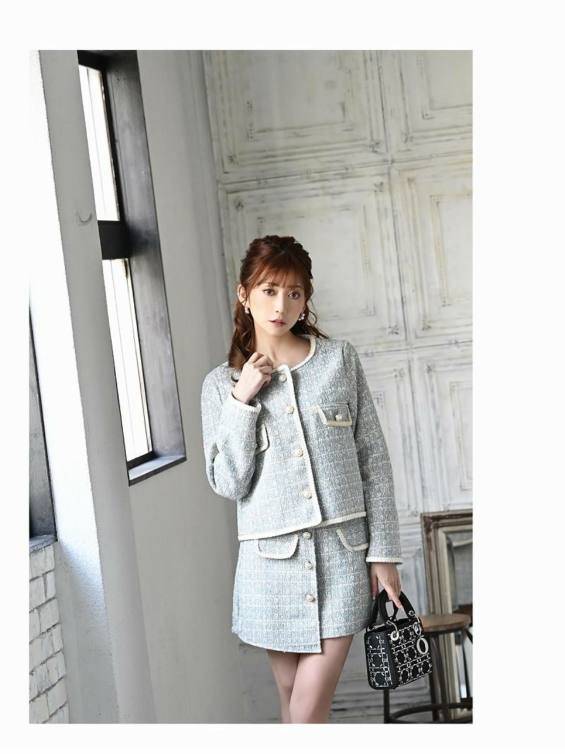 カラーツイードがかわいい!! スーパーSALE¥9480→¥7584! 上品MIXツイード襟付きキャバクラスーツ 加賀美早紀 着用キャバスーツ 【Belsia】(S/M/L)(ホワイト/グレー)