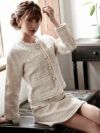 パールの煌めきと白ツイードの気品が織りなす、大人可愛い最上級のセットアップ。 先行予約割¥9900→¥9405!※一部予約販売※ボレロ風ノーカラージャケット付き白ツイード上品ワンピーススーツ 加賀美早紀 着用キャバスーツ【Belsia】(S/M/L/XL(2L))(ホワイト)