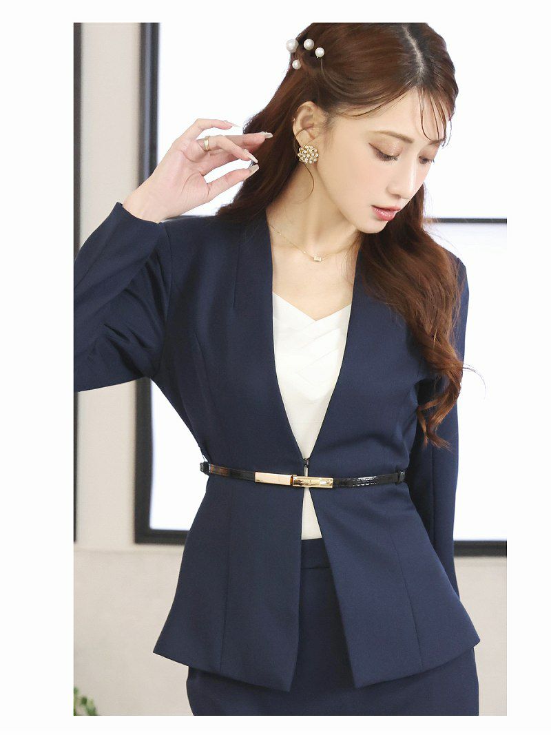 ナチュラル美人になれる大きいサイズスーツ! スーパーSALE¥12800→¥11520! ノーカラージャケットシンプルキャバワンピスーツ 加賀美早紀 着用 レディーススーツ【Belsia】(S/M/L/XL(2L)/XXL(3L))(ピンク/グレー)