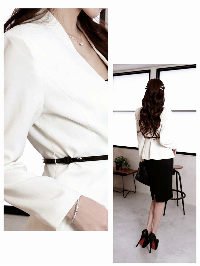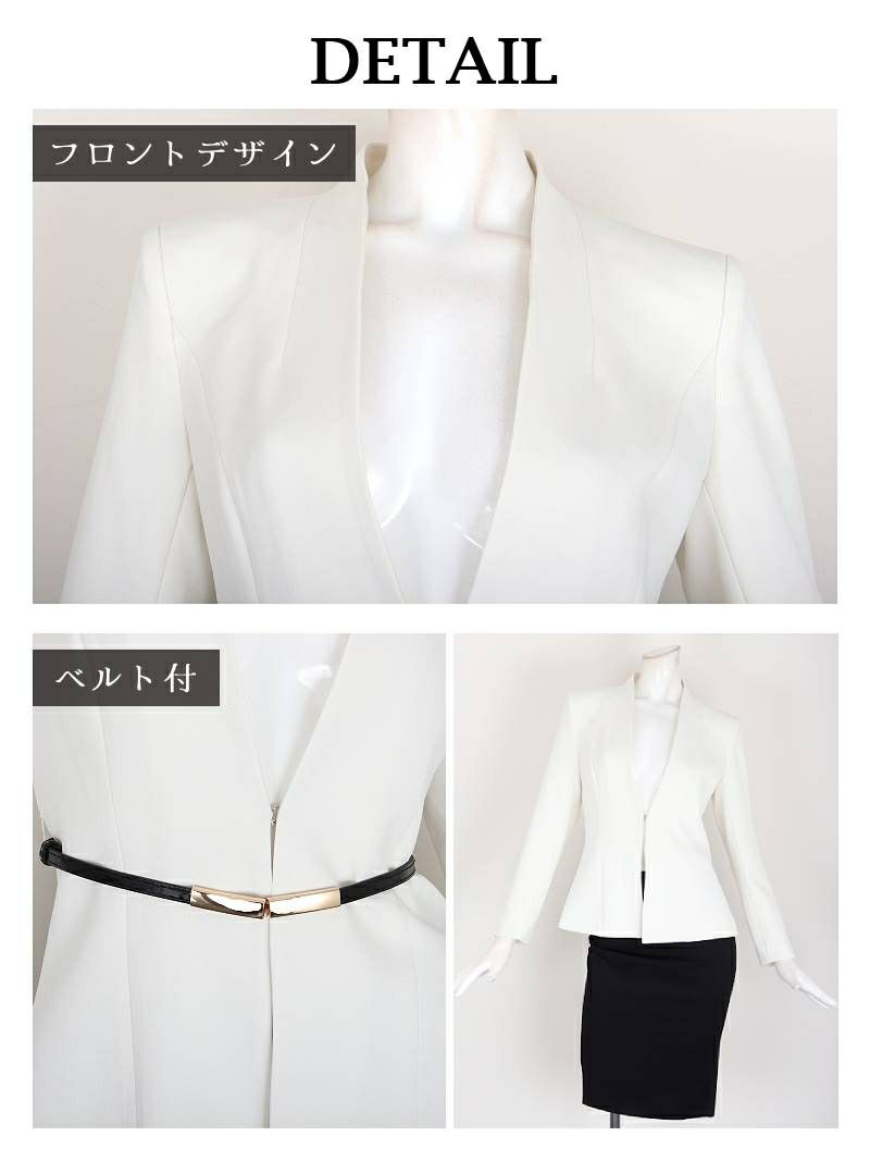 ペプラムデザインで体型カバー 先行予約割¥9980→¥9480!※一部予約販売※ペプラムフォーマルタイトキャバスーツ 加賀美早紀 着用 レディーススーツ【Belsia】(S/M/L/XL/3L)(オフホワイト/ブラック/ネイビー)