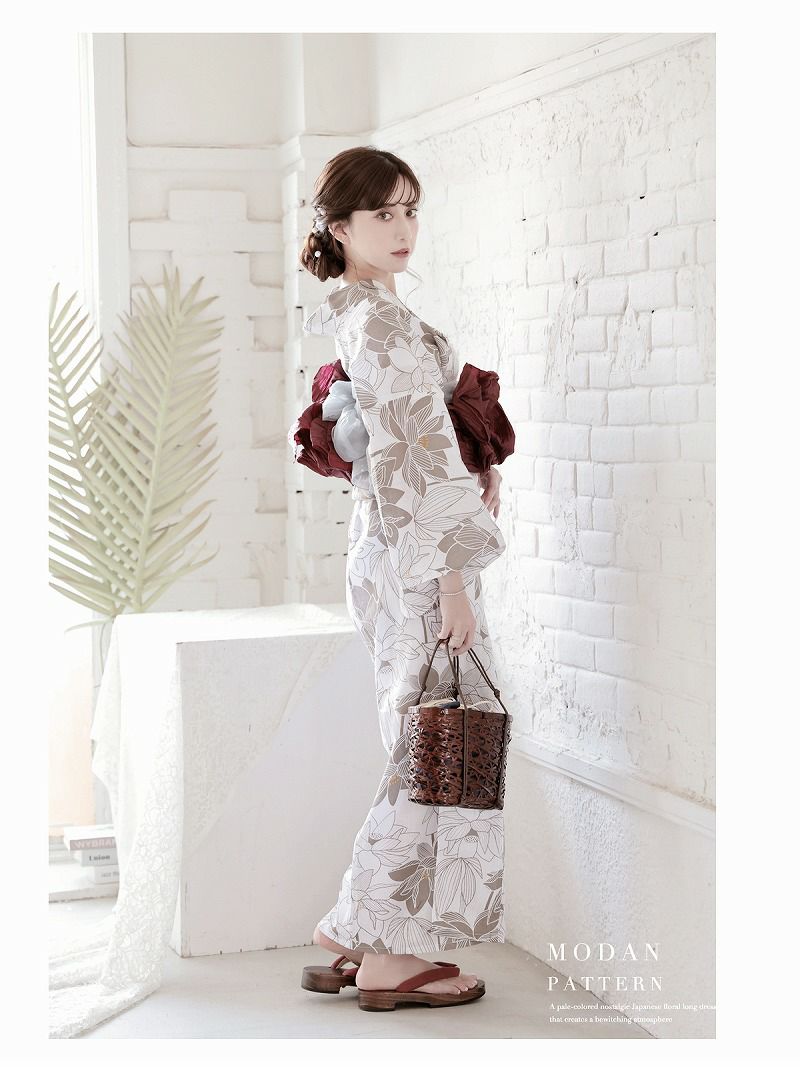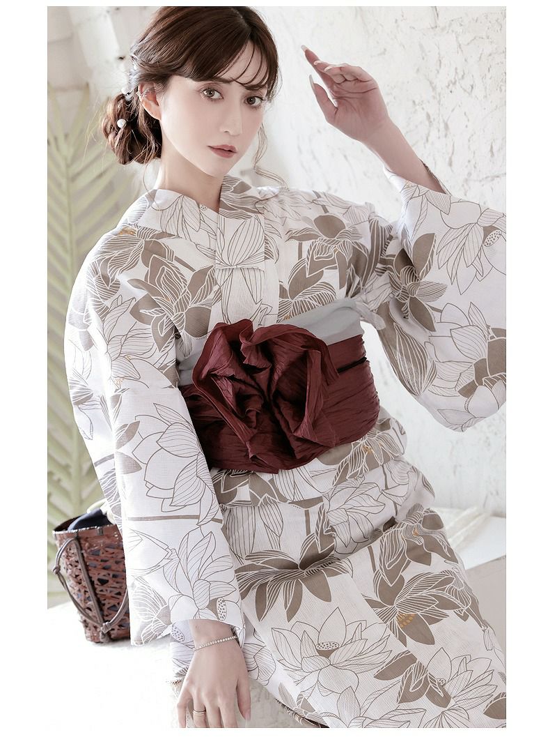涼し気な雰囲気が暑い夏に優雅さを演出する夏浴衣 浴衣 百合柄×白地が可憐なレディース浴衣 加賀美早紀 着用 大人ゆかた2点セット【Ryuyu】(フリーサイズ)(アイボリー)