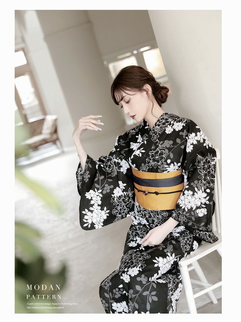 上品さと色っぽさをまとえる、大人のための高級浴衣♪ 浴衣 黒地小花柄モノトーン大人レディース浴衣 加賀美早紀 着用 2点セット浴衣【Ryuyu】(フリーサイズ)(ブラック)