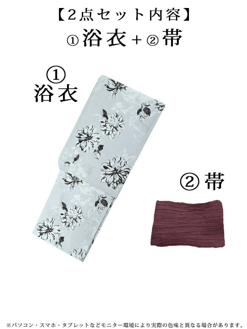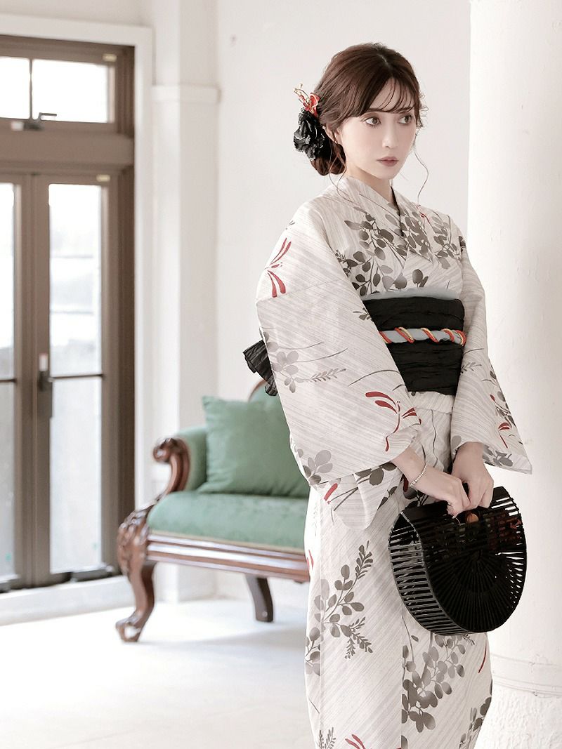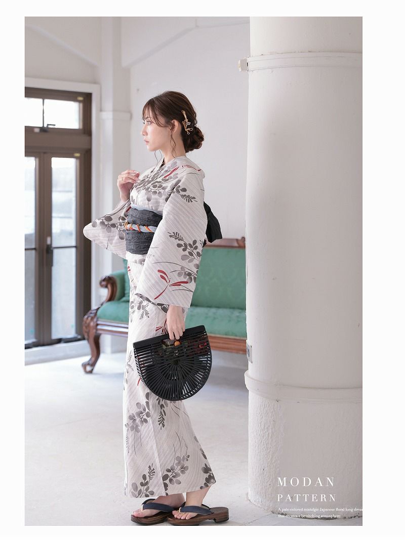 清涼感と色気をまとう、大人かわいい夏浴衣。 浴衣 グレー×ストライプ小花柄 大正ロマンレディース浴衣 加賀美早紀 着用 2点セット浴衣【Ryuyu】(フリーサイズ)(グレー)